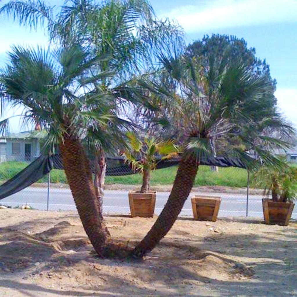 Washingtonia Fliliferas - California Fan Palm 6' to 30' BTH Big and Bold. All sizes available skinned or unskinned available and ready to ship, limited quantity over 20' BTH. Hybrids available.
